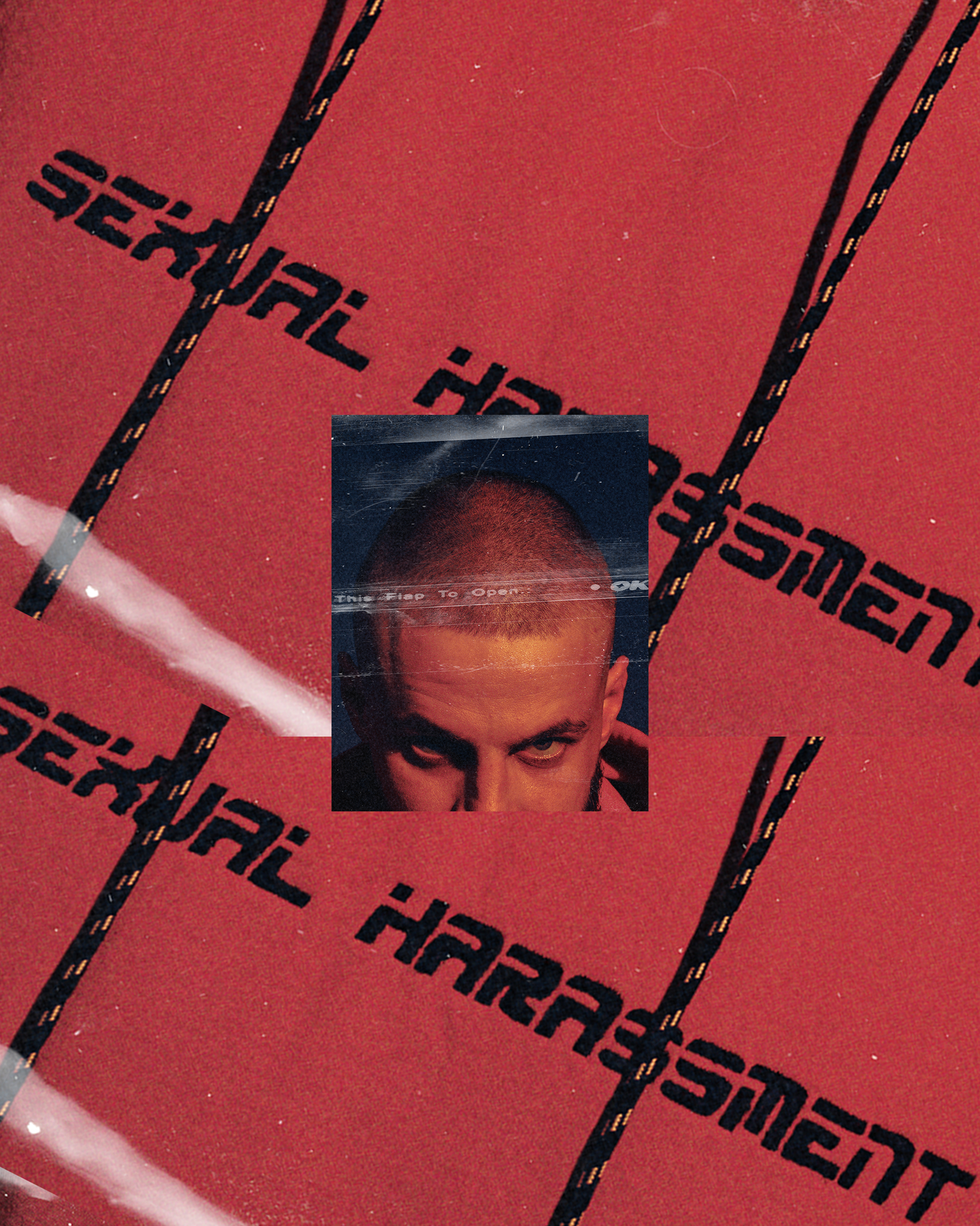 “Raise this flap to open — sexual harassment”